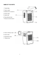 NAME OF THE PARTS 1. Control knob 2. Cool air-outlet 3. Exhaust hose’s connector 4. Exhaust tube 5. Hot air-inlet 6. Downside drain hole 7. Remote control’s location 8. Hot air-outlet’s joint part 9. Hot air-outlet 10. Upside drain hole 11.