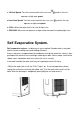 c. HI Cool Speed: Turn the control switch to the “ ” position, the unit operates at high cool speed. d. Low Cool Speed: Turn the control switch to the “ ” position, the unit operates at high cool speed. e. FULL: When the water tank is full, the full light is on. f. COOLING: When the unit operates at high cool or low cool, the cooling light is on. Self Evaporative System. Self evaporative system – no drip tray or hose required.