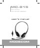 Connection UNI MODE SERIES MC-815 CZ Connection UNI MODE SERIES Děkujeme, že jste si pořídili sluchátka MC 815 Connection UNI MODE SERIES. Tato pohodlná a měkká stereofonní ušní sluchátka, vyrobené z nejkvalitnějších materiálů, s moderním designem a pohodlnou nastavitelnou konstrukci jsou výborným řešením pro osoby, které si váží komfort a vyžadují nejvyšší kvalitu zvuku. Esteticky ukončené ušní polštářky dokonalé sedí na uších a tím zaručují dobré ztišení vnějších hluků.