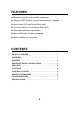 FEATURES Bluetooth wireless stereo audio streaming Support A2DP Profiles for most smart phones / laptops Aux In input (3.5 mm Stereo Mini Jack) Aux Out output (3.5 mm Stereo Mini Jack) Disco ball with Disco light effect Micro USB jack for battery charging Built-in battery for unit power CONTENTS WHAT’S IN THE BOX . . . . . . . . . . . . . . . . . . . . . . . . . . . . . 1 OVERVIEW . . . . . . . . . . . . . . . . . . . . . . . . . . . . . . . . . . . . . 1 WARNING ........................
