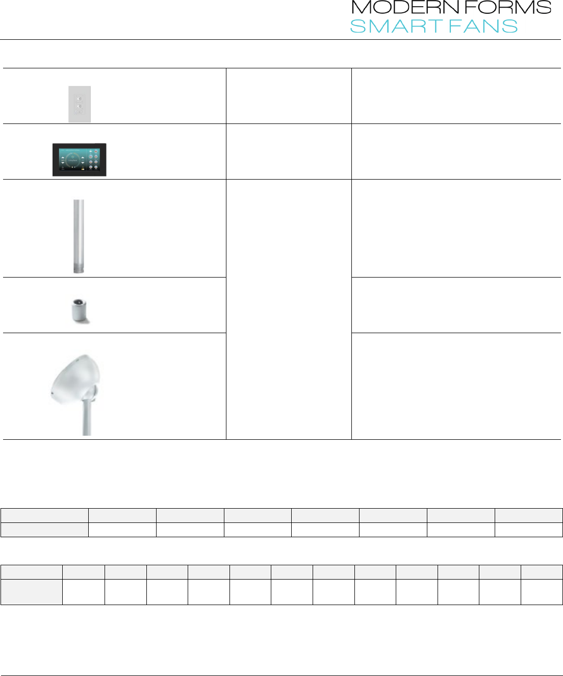 Examples: RF Wall Control - F-WC-WT, Wi-Fi Touch Panel - F-TS-WT, Downrod - XF-12-BZ, Downrod Coupler - XF-I-BZ, Sloped Ceiling Kit - XF-SCK-DW