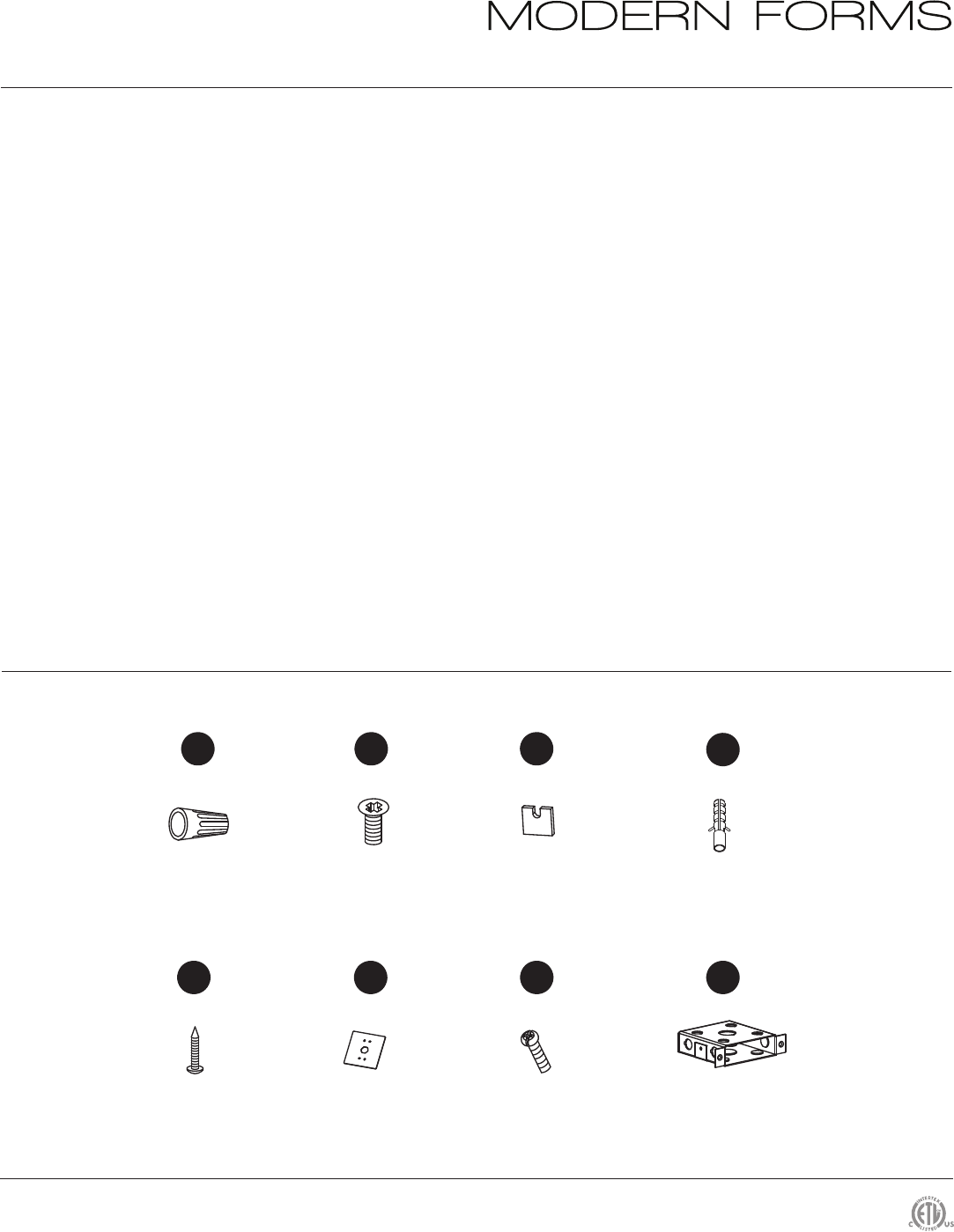 avec les pièces et/ou accessoires fournis pour être utilisés avec les produits Modern Forms. Remplacer des pièces ou accessoires non conçus
