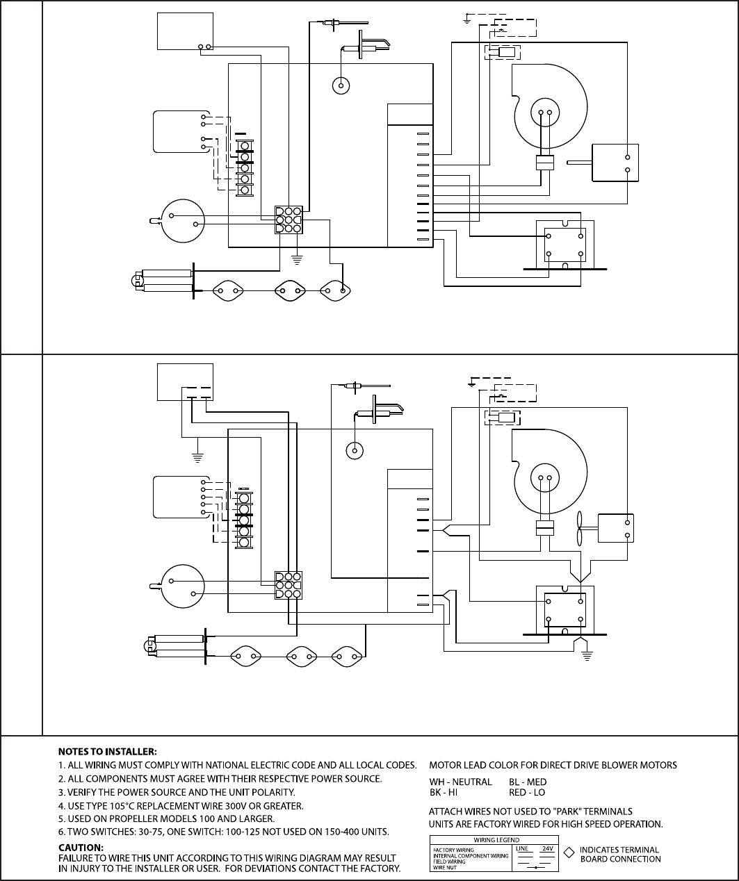 Figure 21.1 - Unit Heater Wiring Diagram (Single and Two Stage, Direct Spark Ignition)