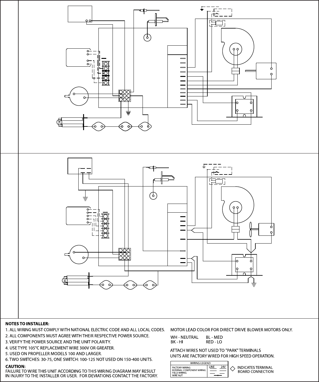 Figure 21.1 - Unit Heater Wiring Diagram (Single and Two Stage, Direct Spark Ignition)