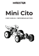 User Manual MODSTER Mini Cito Safety and caution - Never run the model on public roads or streets, as it could endanger traffic. - Never run the model in crowded areas, near or toward people or animals,to prevent property damage and/or personal injury. - Never run the model near rivers, ponds or lakes as to prevent RC car from dropping into the water. - Make sure that no one else is using the same frequency as yours in your running area.
