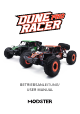 Manual MODSTER Dune Racer Pro mance and defective parts. Take care of your model so that you will have fun with it for a very long time. ! • High performance vehicles generate small vibrations that can cause bolts to come loose over time. Check the lug nuts and other bolts on your vehicle regularly to ensure that all bolts are always tight. • On the subject of driving time driving time is very much affected by the type and condition of the battery used.