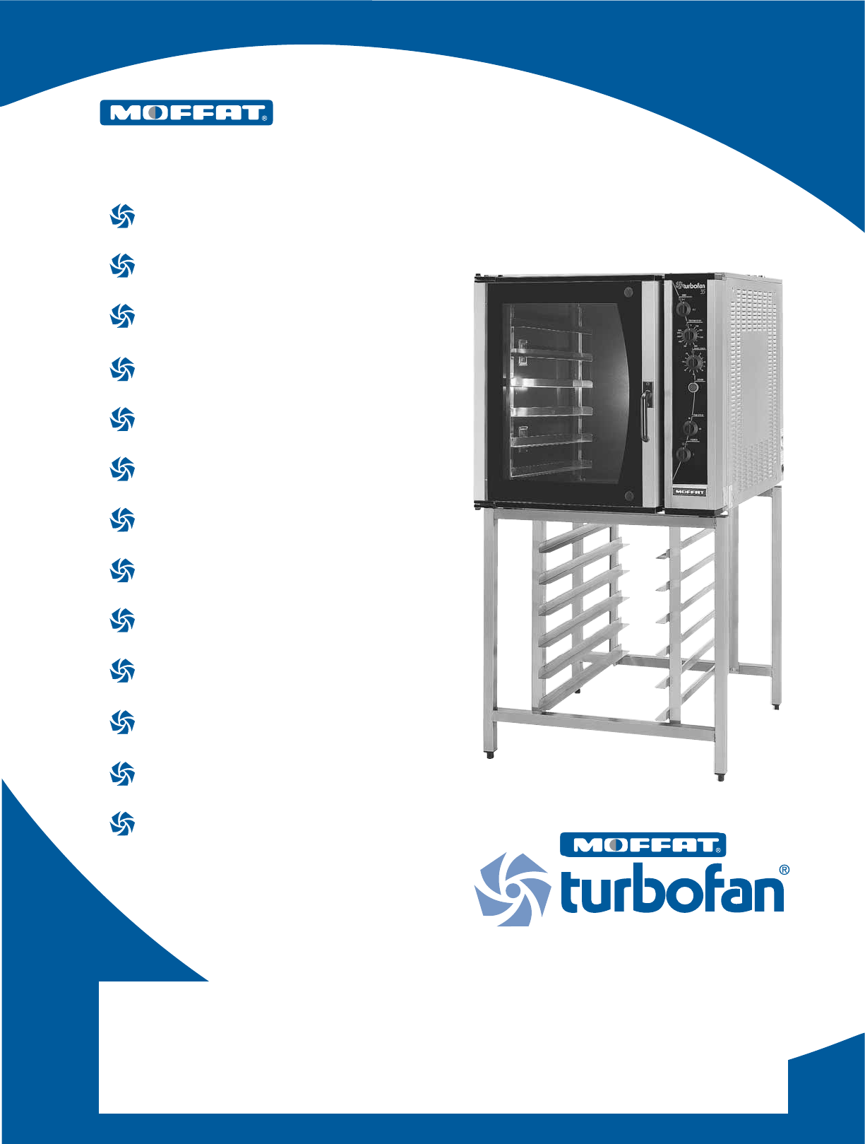 Unit shall be a Moffat electrically heated Turbofan convection oven on a Turbofan A26 stainless steel stand, E.T.L listed (UL Std 197,