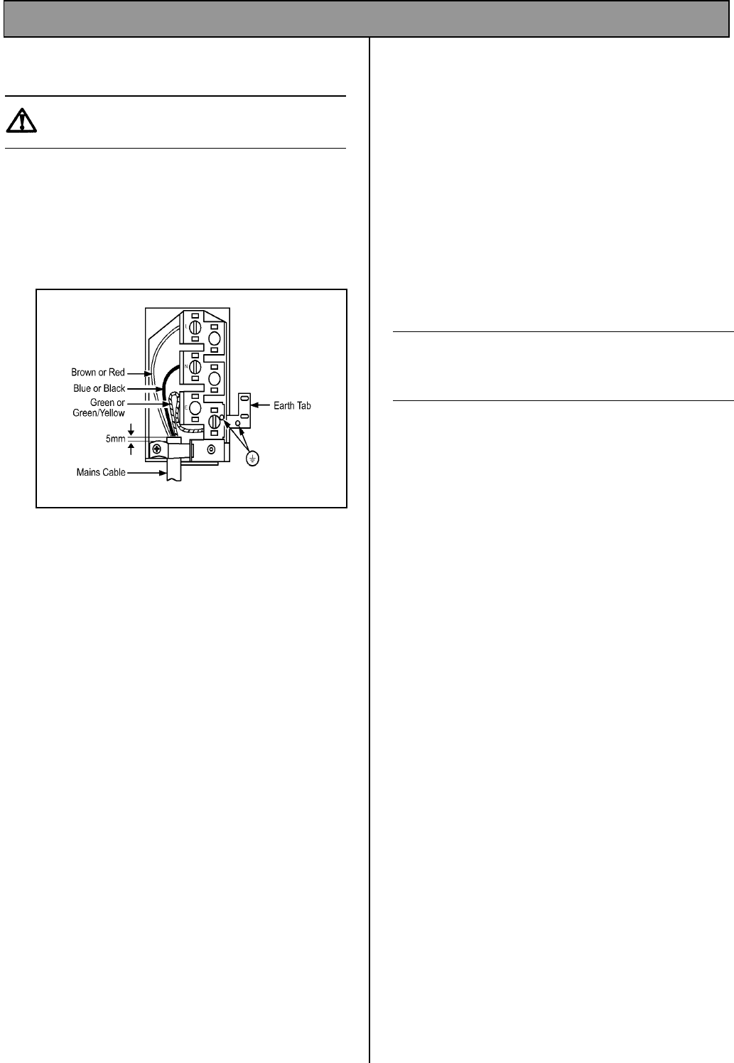 • Clamp the mains cable securely ensuring 5mm of