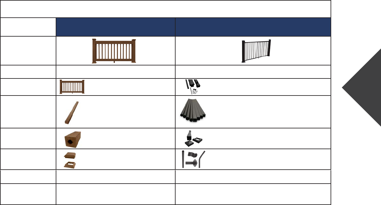42” RAIL HEIGHT – 36.75” LEVEL KIT; 35.5” STAIR