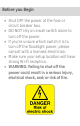 Before you Begin Shut OFF the power at the fuse or circuit breaker box. DO NOT rely on a wall switch alone to turn off the power. If you’re unsure which switch it is to turn off the floodlight power, please consult with a licensed electrician. Make sure your setup location will have strong Wi-Fi reception. WARNING: Failing to shut off the power could result in a serious injury, electrical shock, and/or risk of fire.