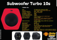 all rights reserved (c} 2011 Monkey Banana (R) TURBO 10s Type: [RH Frequency Response: Crossover Frequency! LF Amplifier Power: S/N Ratio {weighted} LF: THANT @Rated Power LF; Output Connectors: Input Mode-Select: Input Connectors: Output Connectors: J ECE Le Mode Switch: Digital sampling rate: Input Impedance: Input Sensitivity: Gross weighty [IRE ha fete Het Dimensions: Sub woofer Turbo 10s 10° Digital active Sub woofer 300W Inch Magnetically shielded Paper Cone 20Hz ~ 40Hz ~ 120Hz A-120Hz adjustable 300W