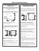 Installation Preparation PREPARE ELECTRICAL WIRING FOR PERSONAL SAFETY: Remove house fuse or open circuit breaker before beginning installation. Do not use an extension cord or adapter plug with this appliance. Alternate Receptacle Location 18" 18" 6" AVERTISSEMENT POUR ASSURER LA SÉCURITÉ PERSONNELLE, il faut enlever le fusible ou couper le courant au disjoncteur avant de commencer l’installation. Avec cet appareil, il ne faut pas utiliser de rallonge ni d’adaptateur de prise.