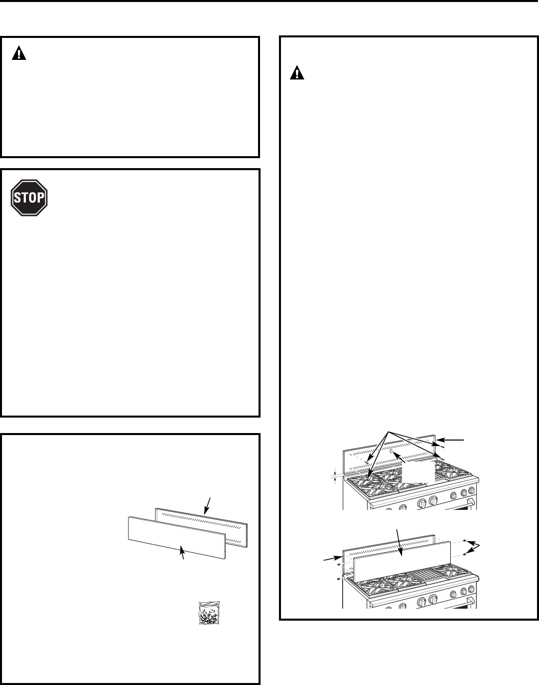 cm (12") pour les cuisinières et les tables de cuisson