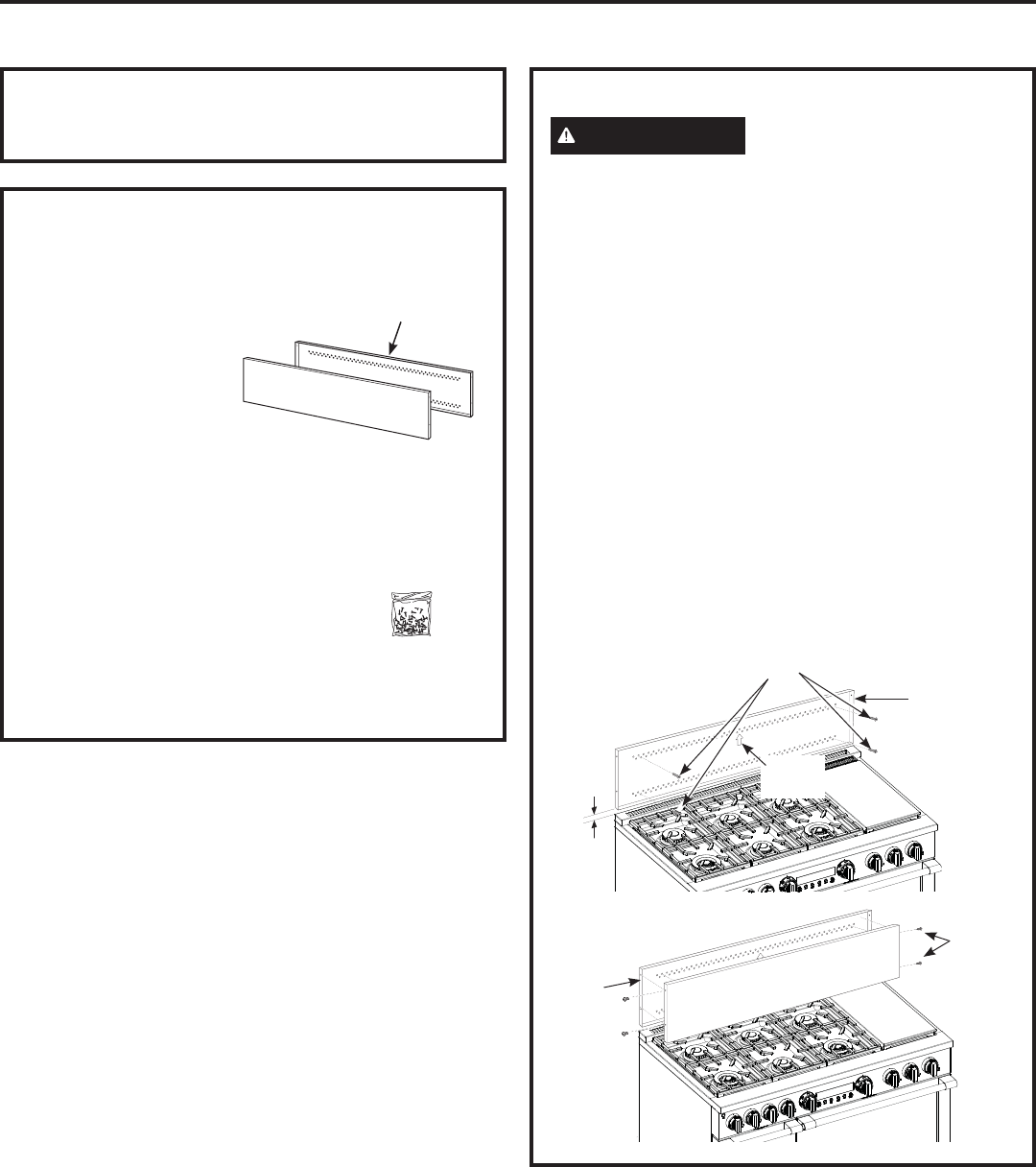 sobre la pared, 1/8” sobre la cocina o estufa. El espacio