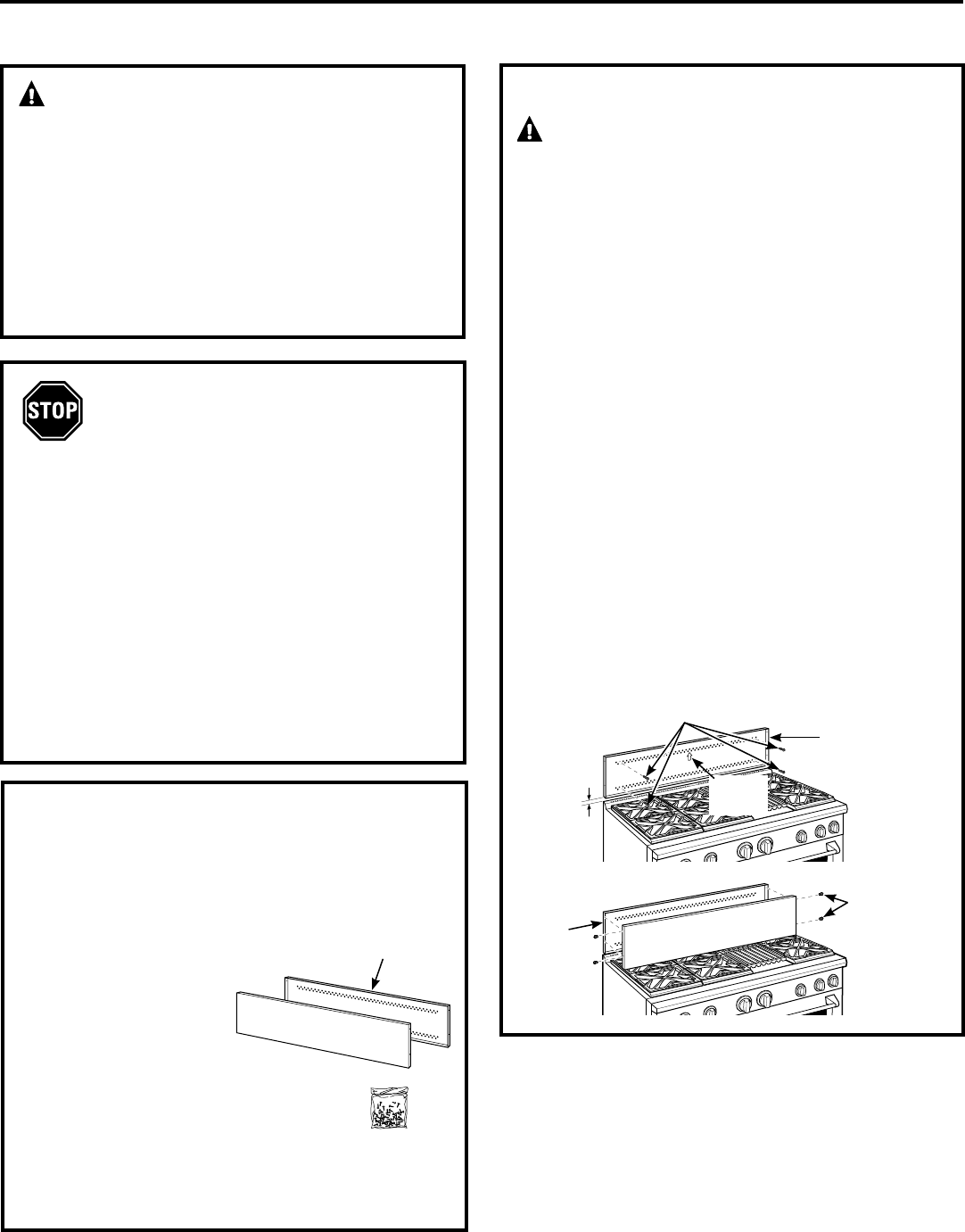 • Instale y nivele la cocina o estufa y la capucha