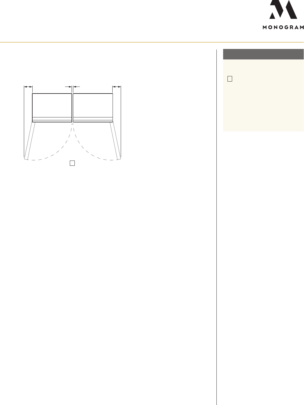 product, 1" clearance between