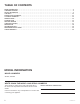 TABLE OF CONTENTS MODEL INFORMATION . . . . . . . . . . . . . . . . . . . . . . . . . . . . . . . . . . . . . . . . . . . . . . . . . . . . . . . . . . . . . . . . . . . . . . . . . . . . . . . . . . . . . 2 CONSUMER SUPPORT . . . . . . . . . . . . . . . . . . . . . . . . . . . . . . . . . . . . . . . . . . . . . . . . . . . . . . . . . . . . . . . . . . . . . . . . . . . . . . . . . . . . . 3 SAFETY INFORMATION . . . . . . . . . . . . . . . . . . . . . . . . . . . . . . . . . . . . . . . . . . . . . . . .