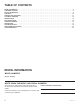 TABLE OF CONTENTS MODEL INFORMATION . . . . . . . . . . . . . . . . . . . . . . . . . . . . . . . . . . . . . . . . . . . . . . . . . . . . . . . . . . . . . . . . . . . . . . . . . . . . . . . . . . . . . 2 CONSUMER SUPPORT . . . . . . . . . . . . . . . . . . . . . . . . . . . . . . . . . . . . . . . . . . . . . . . . . . . . . . . . . . . . . . . . . . . . . . . . . . . . . . . . . . . . . 3 SAFETY INFORMATION . . . . . . . . . . . . . . . . . . . . . . . . . . . . . . . . . . . . . . . . . . . . . . . .
