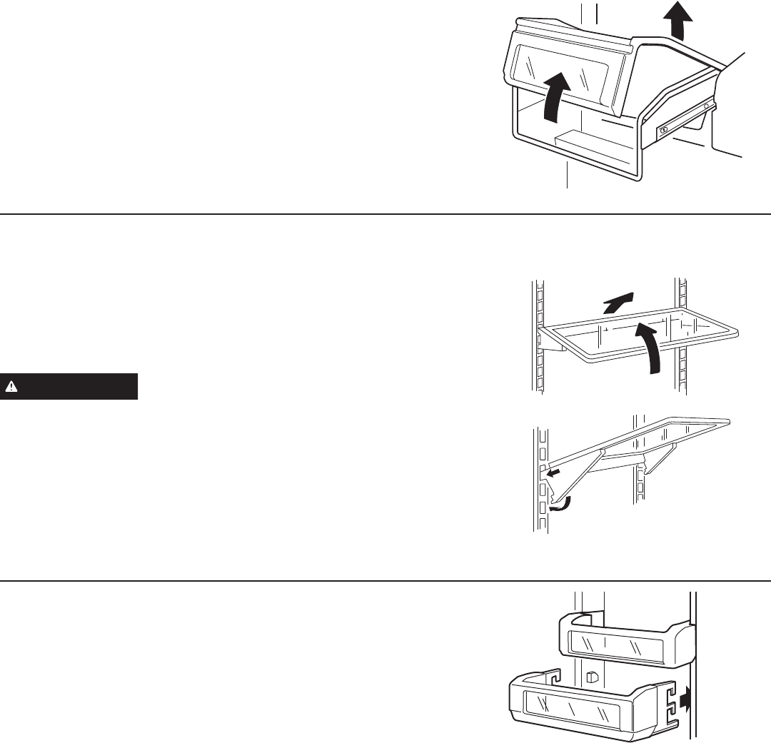Para retirar las repisas: Incline la repisa hacia arriba en la parte