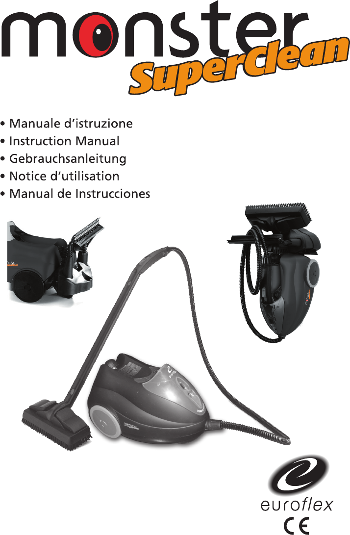 Importanti istruzioni generali di sicurezza Per utilizzare Monster 60 SuperClean, osservare sempre le norme generali di sicurezza, comprese le seguenti: Per ridurre il rischio di incendio, folgorazione, o 1. Leggere attentamente le istruzioni prima di utilizzare ferimento: Monster 60 SuperClean. • Non lasciare l’apparecchio acceso incustodito. Staccare sempre la spina dalla presa di corrente dopo l’uso e prima di qualsiasi operazione di manutenzione o rabbocco della caldaia.