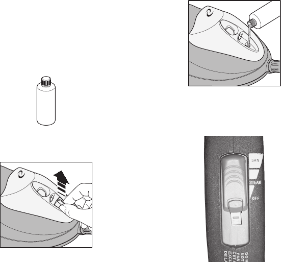 steam, press the button on the handle as shown
