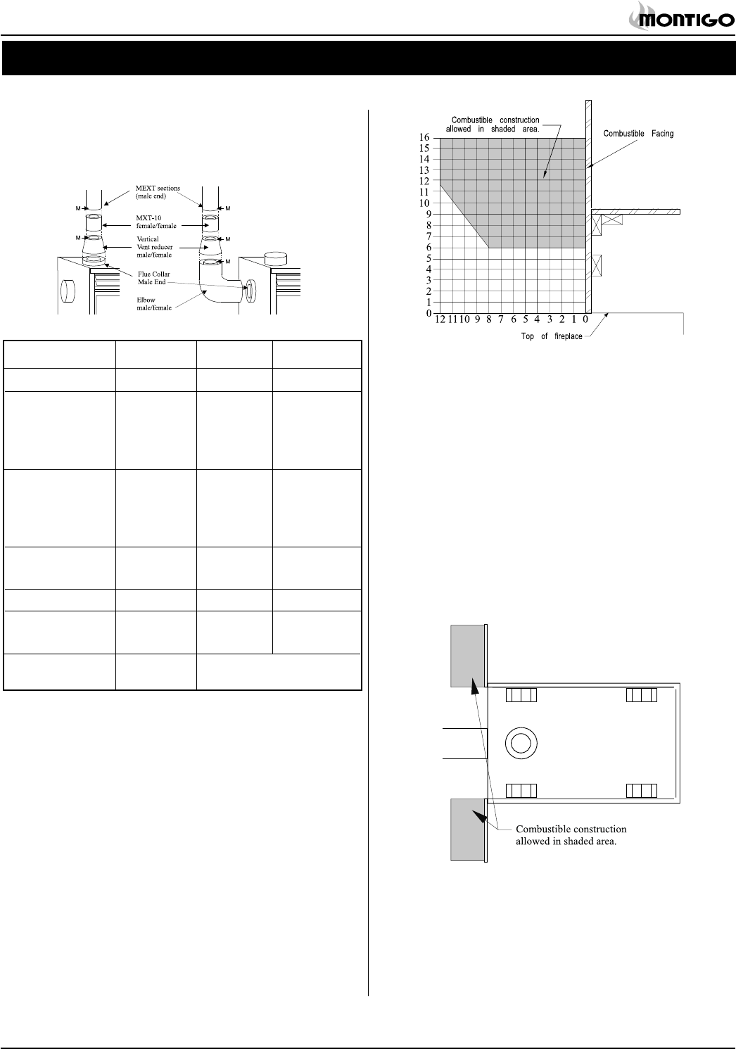 NOTE: Mantel clearances are for fire hazard prevention to combusti-