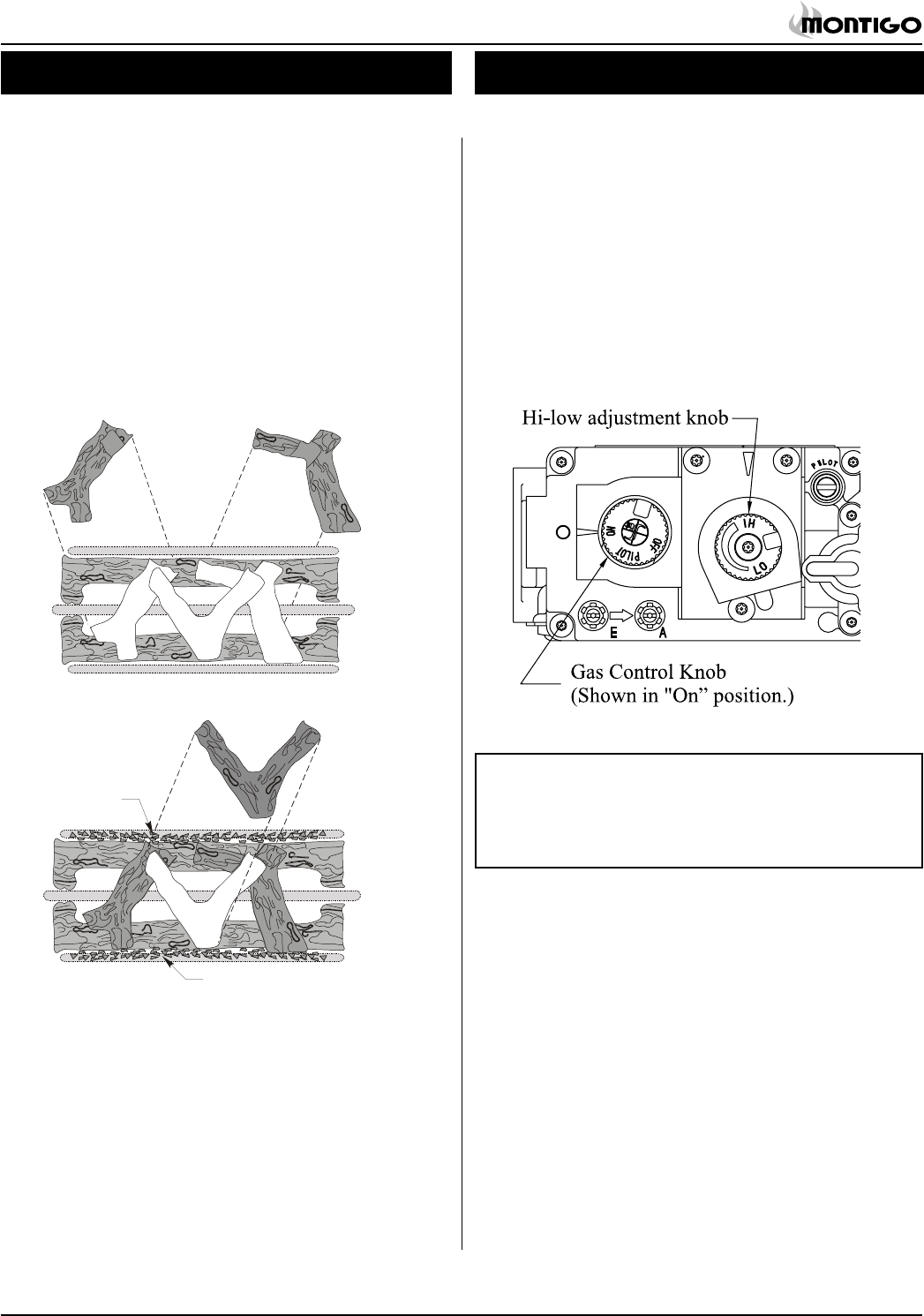 evenly along both ember burner tubes, next to logs 'A' and 'B'. Refer to