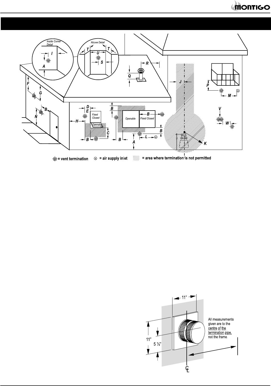 E = clearance to permanently closed window [16 inches 41 cm recommended