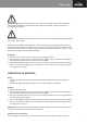 English Warning: Do not project spray to eyes or to surfaces with electronic components, such as plug, switch, cable, stereo equipment, computer screens, or household appliances. Warning: Use the vacuum func�on only to vacuum liquids used during the cleaning process Tip: With the use of the emery wipe the device does not need detergent, but in case of heavy dirt and grease a few drops vinegar can be added to the water to help degreasing and unclog your windows.