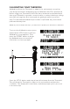 CALIBRATING THE PITCH ANTENNA HIGHEST NOTE POSITION Press the SETUP button and place your hand very close to the Pitch antenna, but without touching it. This will determine your hand position for playing the highest selected note. The display will count down, and then prompt you to proceed to the next step. LOWEST NOTE POSITION Press the SETUP button and place your hand about an arm’s length away from the Pitch antenna. This will determine the hand position for playing the lowest selected note.