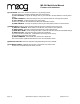 MP-201 Multi-Pedal Manual Firmware v2.0 Addendum COMMON PARAMETERS (all channel modes) CHAN NAME (8 characters) INITIALSTATE (OFF, ON) CHANNEL MODE (EXPRESSION, GATE, LFO, MIDI TO CV, NOISE) MIDI CHANNEL (OFF, 1-16) if MIDI Channel not OFF: PGM CHANGE# (OFF, 0 - 127) BANK CHANGE# (LSB 0-127, MSB 0-127) Page | 11 Specifications subject to change without notice moogmusic.
