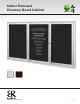 Indoor Enclosed Directory Board Cabinet ▪▪ Heavy duty trim in silver or coffee aluminum frames a 2" internal depth. ▪▪ Locking hinged doors protect items on display and prevent tampering. ▪▪ Comes with up to three doors with shatter-resistant clear acrylic panels. ▪▪ Back panel is grooved black felt. Includes set of 300 letters, numbers, and punctuation marks. Additional letter sets available separately. ▪▪ TAA compliant. A.