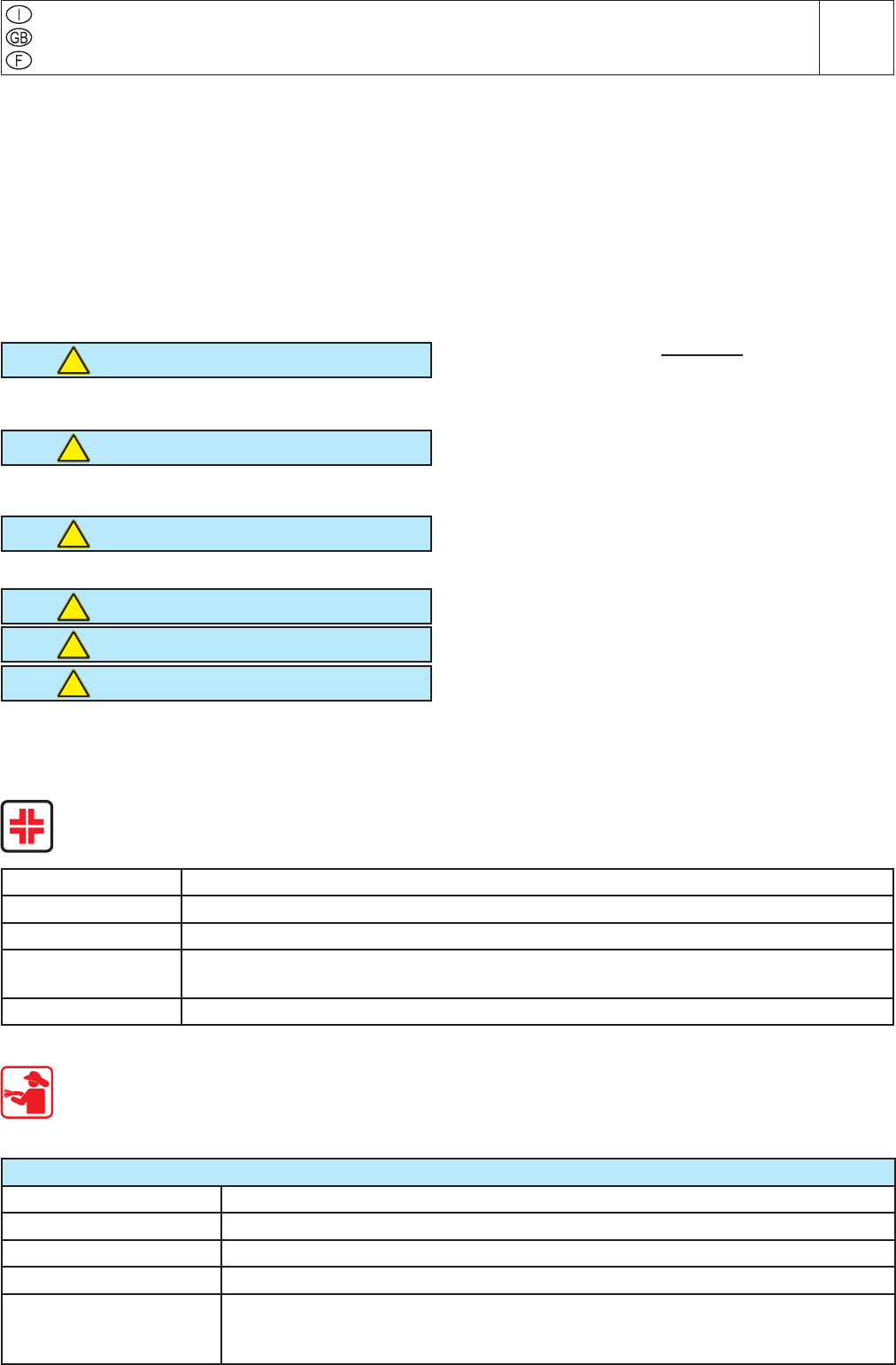 + FIRSTAID. In case the operator shold be sprayed by accident, from corrosive liquids a/o hot toxic gas