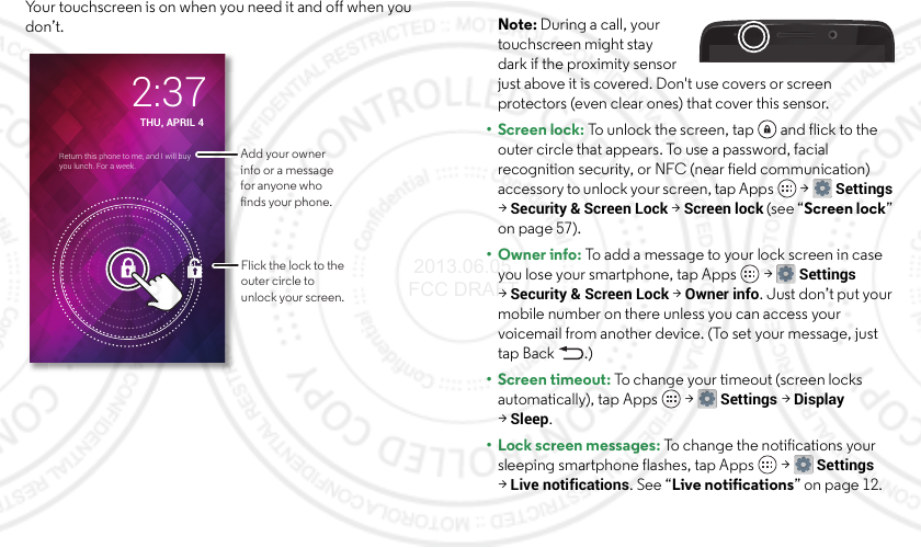 • Screen lock: To unlock the screen, tap and flick to the