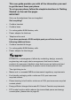 12. Help No dial tone • • • Use only the telephone line cord supplied. Check that the telephone line cord is connected properly. Check that the mains power is connected properly and switched on. No display • Check that the batteries are inserted correctly and fully charged. Use only approved rechargeable batteries supplied. • • Check that the handset is switched on. Press and hold . Reset the base by removing the batteries and disconnecting the mains power.