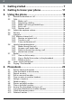 1. Getting started......................................................... 7 2. Getting to know your phone................................ 11 3. Using the phone .................................................... 18 3.1 Switch the handset on / off........................................................... 18 3.2 Calls................................................................................................. 18 3.2.1 Make a call...........................................................