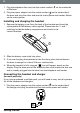 2. Remove the battery cover from the back of the handset and insert the 2 x AAA NiMH rechargeable batteries supplied. Please note the ’+’ and ’-’ markings inside the battery compartment and insert in the correct direction. 3. Slide the battery cover back into place. 4. If you are charging the batteries for the first time, place the handset on the charger to charge for at least 24 hours continuously. icon will appear steady on the 5. When the handset is fully charged, display.