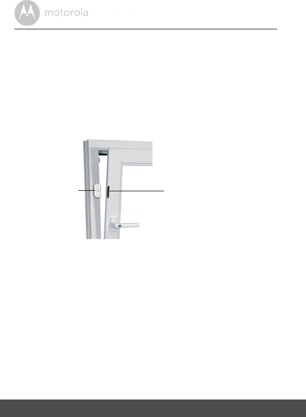 Na poniższym rysunku czujnik alarmu jest zamontowany na ramie okna,