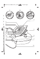 1800121710-01 GM5010 GTL_110x154 04/01/11 09:06 Page8 DESCRIPTION 1. 2. 3. 4. 5. 6. 7. 8. 9. 10. 11. 12. Steam control button Iron temperature adjustment dial Temperature setting mark Thermostat light Iron rest Boiler cap Boiler (inside the base-unit) Steam cord storage space Steam cord Electric cord tidy Power cord Illuminated on/off switch PREPARATION What water to use ? • Your iron has been designed to operate using untreated tap water.