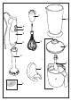 Komma igång Före första användning ska tillbehören rengöras i vatten med lite diskmedel. Skölj och torka dem noggrant. Varning: bladen är mycket vassa. Användning av mixerstaven Sätt staven (E) på motorblocket (A) och vrid tills du hör ett ”klick”. Din mixer är idealisk för beredning av såser, soppor, cocktails, milkshakes, majonnäs, pannkakssmet, våffelsmet och barnmat.