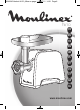 2643245 Hachoir HV10_Mise en page 1 21/07/11 14:21 Page1 FR Nous vous remercions d’avoir choisi un appareil de la gamme Moulinex. DESCRIPTION A Tête de hachoir amovible A1 Corps aluminium A2 Vis A3 Couteau inox auto-affûtable A4 Grilles A4a Grille petits trous (2.4mm ou 3mm) (selon modèle) haché très fin A4b Grille trous moyens (4.7mm) haché fin A4c Grille gros trous (8mm ou 7.