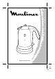 and avoid all contact with the hot surfaces of the appliance. - The kettle must only be used with the lid locked into place and with the base supplied. - For your own safety, use only the accessories and spare parts from Moulinex which are suitable for your appliance. - Do not expose the appliance to atmospheric agents (rain, sun, etc.). - Warning: if the kettle is over-filled, boiling water may be ejected. - Tilt and pour slowly to avoid any risk of possible scalding by hot water.