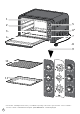 DESCRIPTION 1 2 3 4 5 6 Résistance supérieure Parois en acier à revêtement aluminium Résistance inférieure Porte double parois Bouton de réglage température Bouton des fonctions* 7 8 9 10 11 Bouton de minuterie Cordon d’alimentation Voyant de fonctionnement Grille réversible Plat lèche-frite* 7 8 9 10 11 Timerknop Snoer Aan/uit-controlelampje Omkeerbaar grillrooster Ovenschaal* 7 8 9 10 11 Timer-Knopf Netzkabel Betriebskontrollleuchte Umkehrbarer Grillrost Backblech* 7 8 9 10 11 Timer button Power
