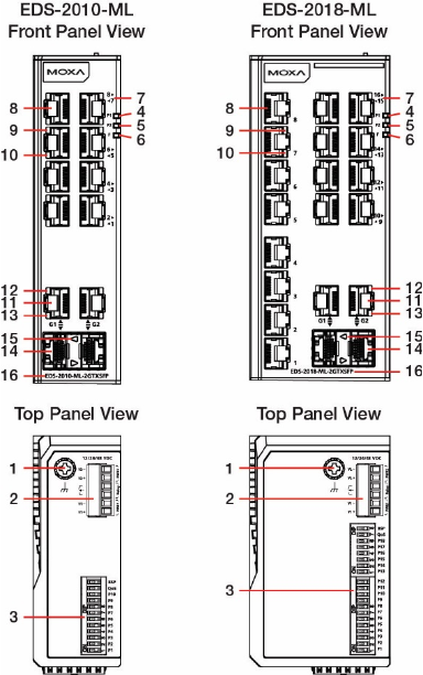 Panel Layout of EDS-2010-ML-2GTXSFP / EDS-