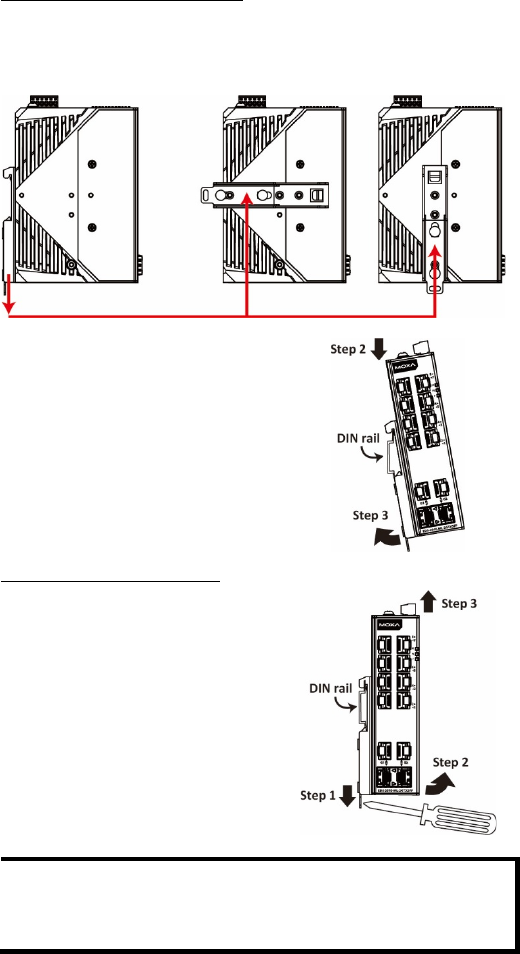 Detach the metal DIN-rail mounting kit from the back panel and attach