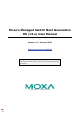 Moxa’s Managed Switch Next Generation OS (v3.x) User Manual The software described in this manual is furnished under a license agreement and may be used only in accordance with the terms of that agreement. Copyright Notice © 2023 Moxa Inc. All rights reserved. Trademarks The MOXA logo is a registered trademark of Moxa Inc. All other trademarks or registered marks in this manual belong to their respective manufacturers.