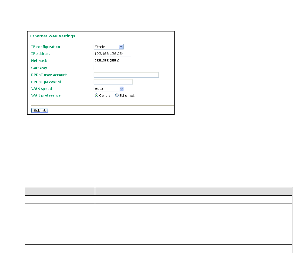 Ethernet WAN Settings is where you assign the OnCell 5000’s IP address, netmask, Gateway, and other