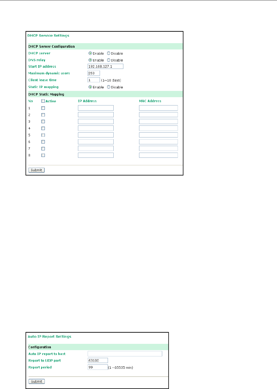 Auto IP report to host: Reports generated by the Auto report function will be sent automatically to this IP