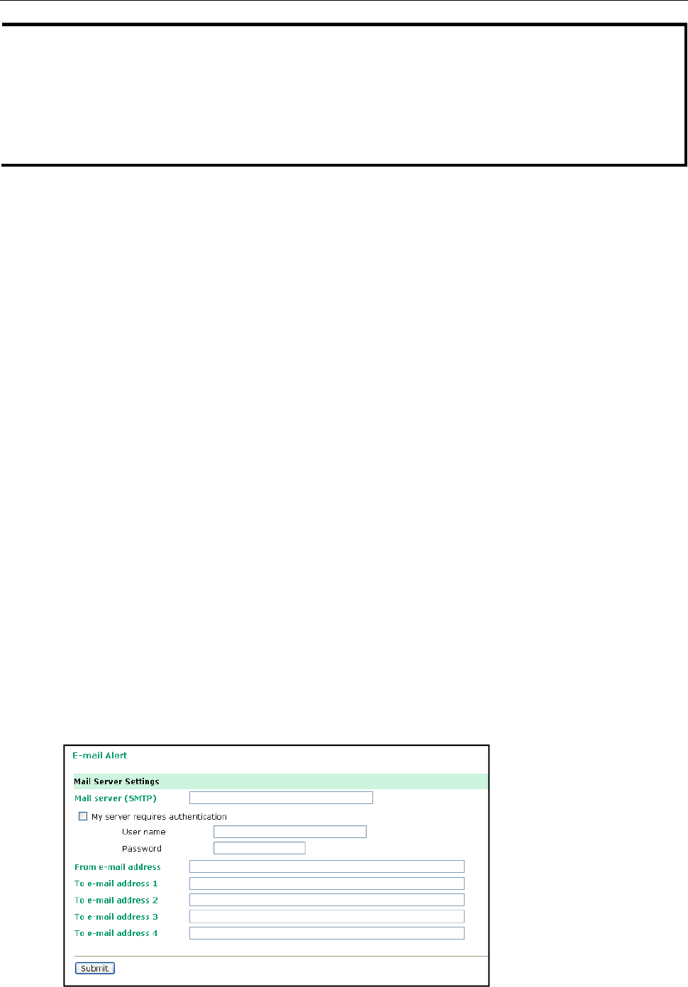 The E-mail Alert settings determine how e-mail warnings are sent for system and serial port events. You may