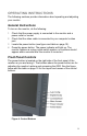 OPERATING INSTRUCTIONS The following sections provide information about operating and adjusting your monitor. General Instructions To turn on the monitor, do the following: 1 2 3 4 Check that the power supply is connected to the monitor and a power outlet or socket. Check that the video cable is connected to your computer’s video port. Locate the power button (see figure and table on page 10). Press the power button. The power indicator will light up.